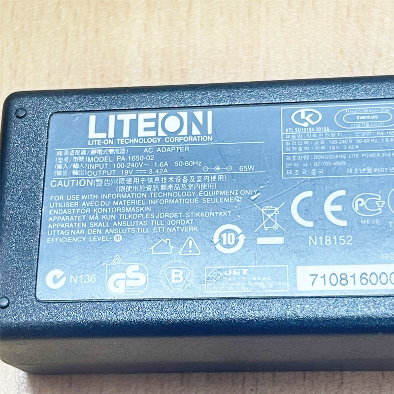 Chuyển Nguồn Adapter Original 19V 3.42A 65W LITEON PA-1650-02 Connector Tip Size 5.5mm x 1.7mm 90 Degree