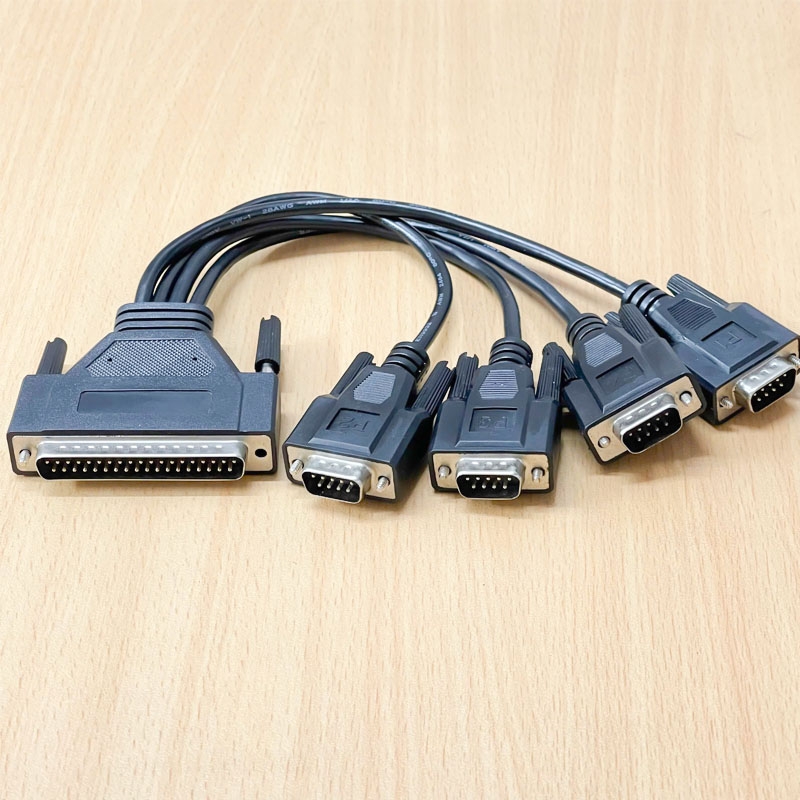 Cáp DB37 Male Dsub to 4Port DB9 Male D-sub này có một đầu nối đực DB37 và 4 đầu nối đực DB9. Thích hợp cho Card nối tiếp 4 cổng PCI 32-Bit