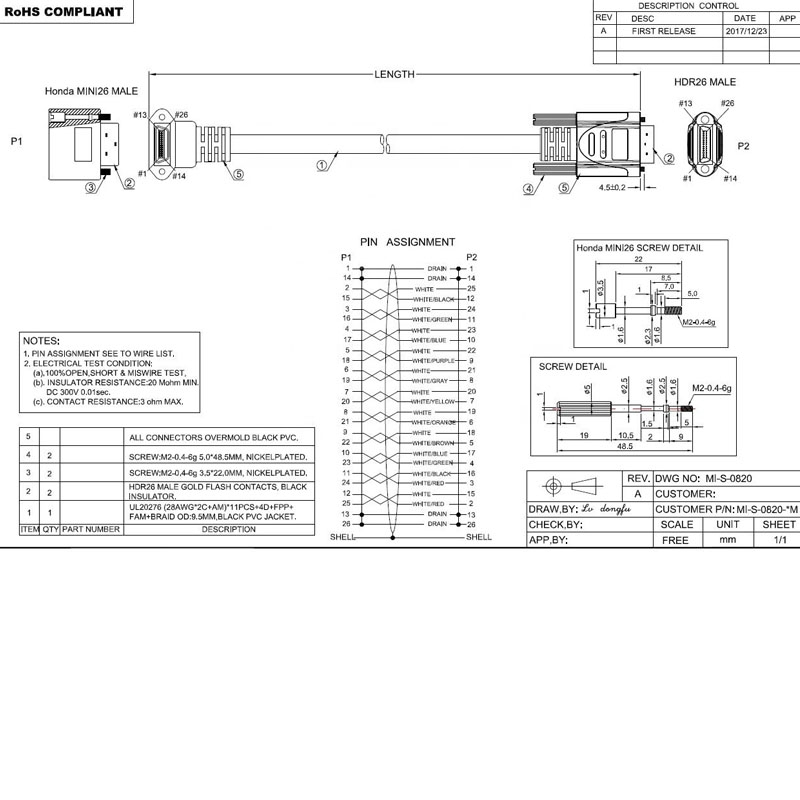 Cáp Original Camera Link SDR 26 Pin Male Plug to SDR 26 Pin Male Plug Black Dài 7.8M - SDR 26 to SDR 26 Camera Link Cable for Insdustrial Camera
