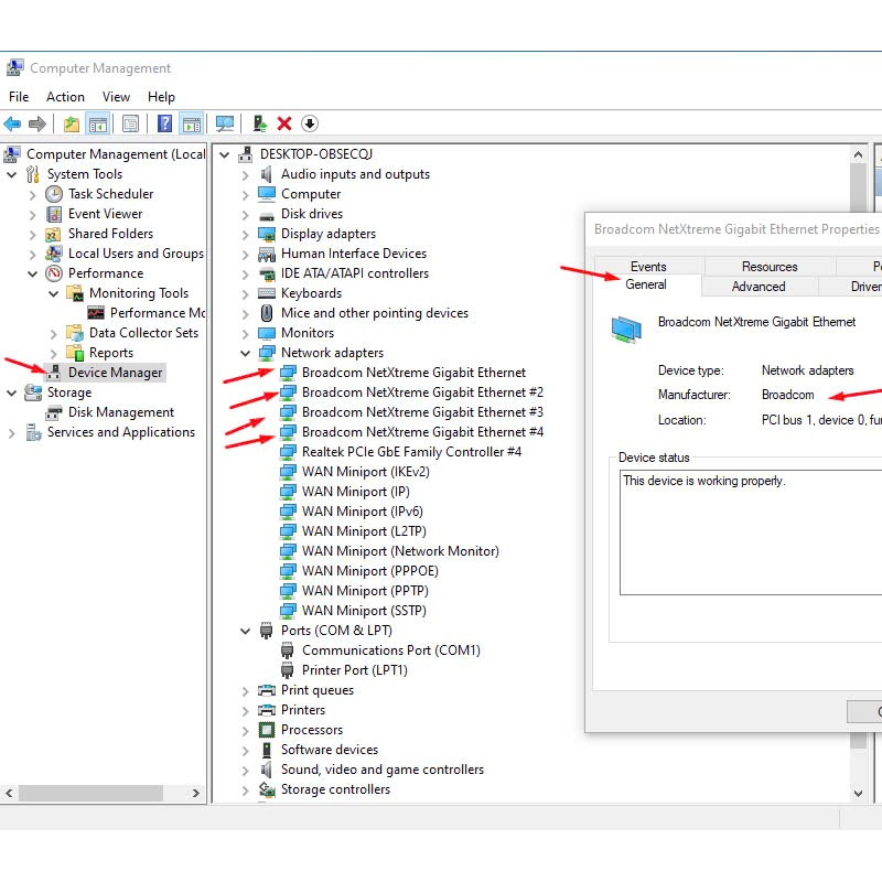 Card Mạng Dell Broadcom BCM95719A1904G Quad 4 Port Lan Gigabit Ethernet Dell Broadcom 5719 Quad Port 1Gb RJ45 Low Profile