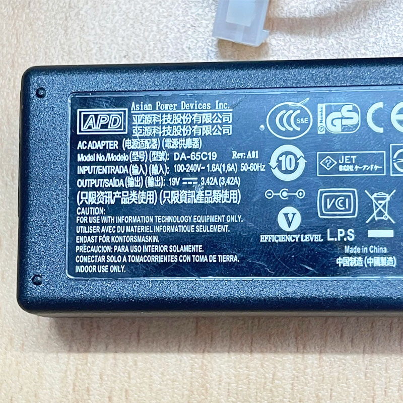 Chuyển Nguồn Adapter 19V 3.42A 65W APD DA-65C19 Connector Size Molex 2 Pin