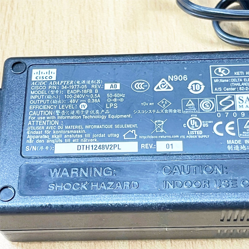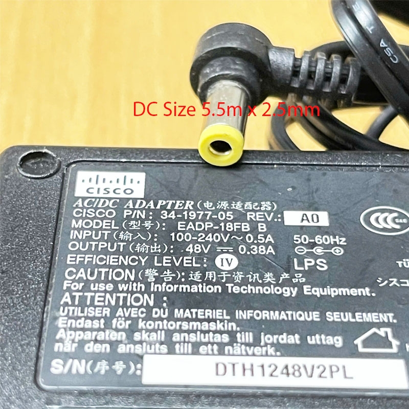Chuyển nguồn Adapter Cisco 48V 0.38A EADP-18FB B DC Size Conector 5.5mm x 2.5mm for Cisco, IP Phone VoIP Telephone